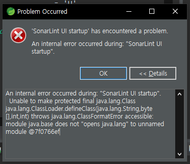 이클립스에 SonarLint 및 플러그인 설치 후 재기동시 오류 발생
