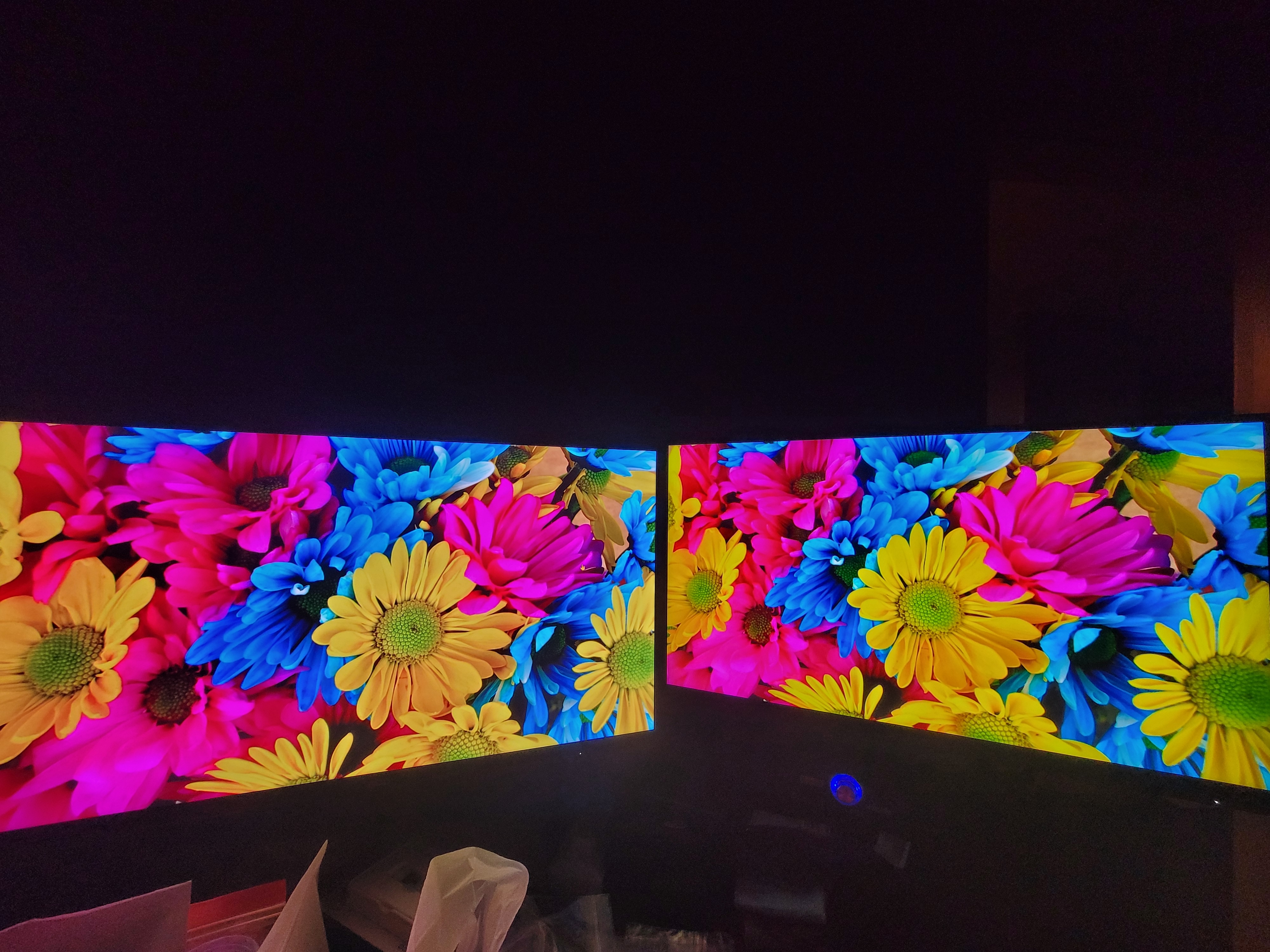 변경한 옵션은 기본설정에서 명도, 쉐도우, 밝기 정도만 조금씩 변경 했다. 내 입 맛에 맞게 보정 후, 검정색 표현도 좋아 졌다. 물 빠진 녹색도 좋아지긴 했는데 그래도 뭔가 좀 아쉬운 감이 아직 남아 있다. (보여지는 사진은 0.5 배율로 와이드로 2개의 모니터를 한번에 찍으려고 하다 보니 초점이 중앙에 맞추어져서 실사와 다르게 표현이 되었을 수 있으니 감안하여 보시길)