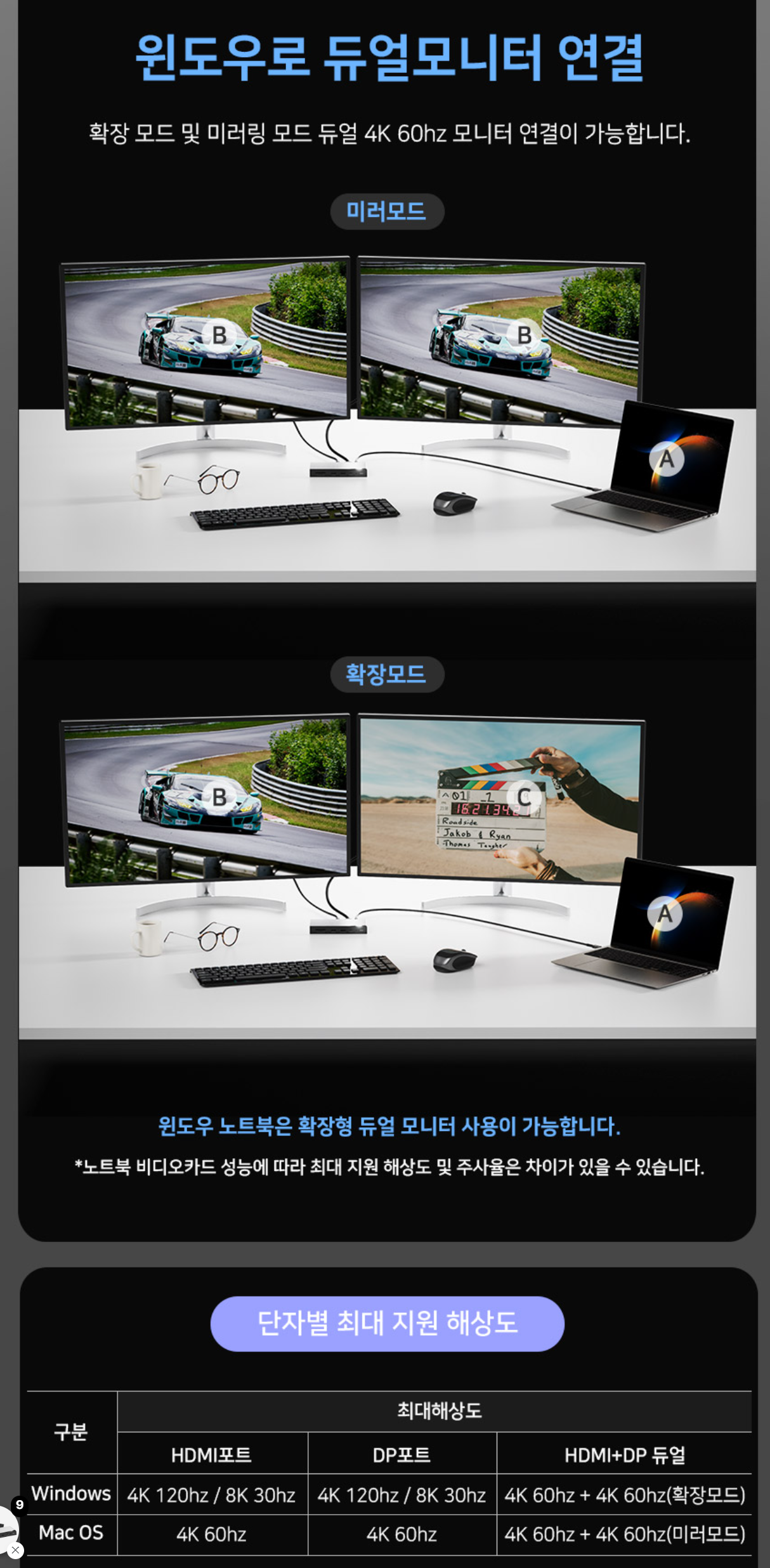 지금 사용하는 랩탑은 썬더볼트 포트를 지원하지 않는 gen1 포트 이지만 썬더볼트에 물려서 사용했을 때 2개 모니터 연결에 문제가 없었다. 포트 속도에 의한 문제라기엔 같은 현상이 발생하지 않은 점, 그리고 일정기간 문제가 없었다가 갑자기 발생한 점 등을 문의했지만 내가 납득할 수 있는 수준의 답변을 듣기에는 어려움이 있었다.